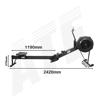 The rower machine is made of an aluminium frame, is 2040mm long, and 620mm wide. The PU foam seat is at a height of 379mm. It glides over a monorail of 1190mm via a stainless steel chain, which is partially covered.