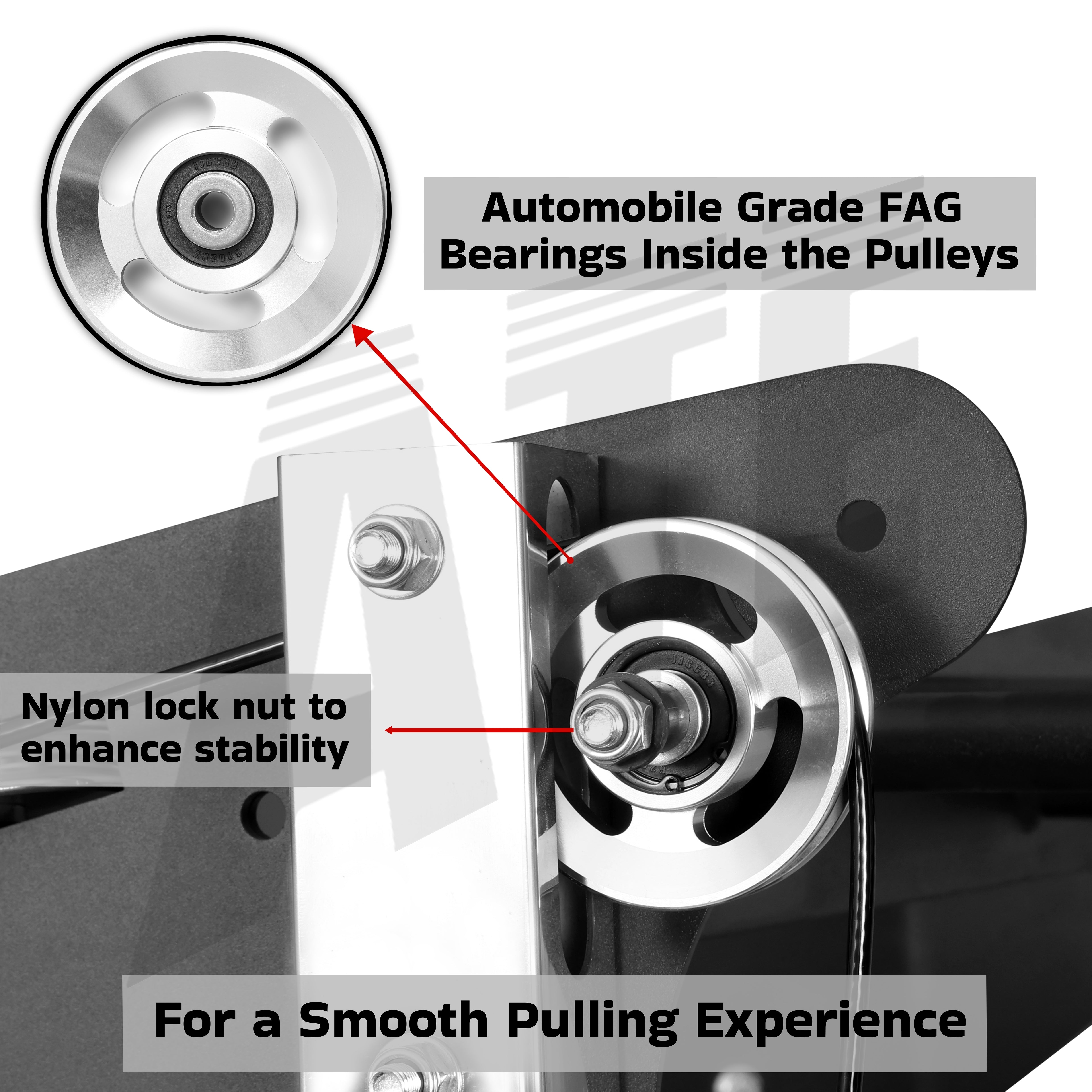 4” Diameter pulleys with 2:1 Pulley Ratio – smooth resistance and safer movement control.