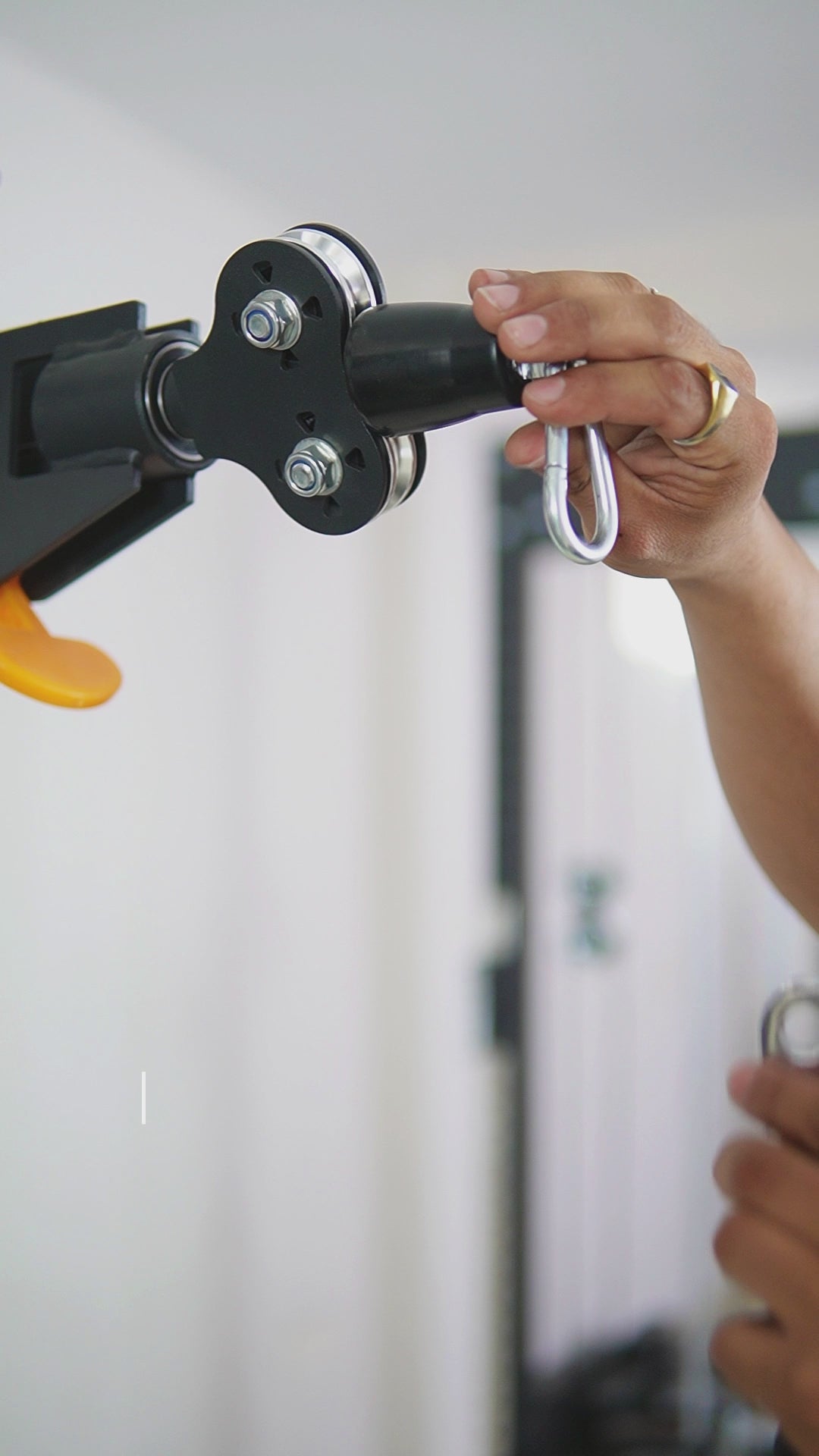 Magnetic Selector Pin: The weight selector pin features a magnetic locking mechanism for secure placement and is tethered to the stack to prevent misplacement or loss during workouts.