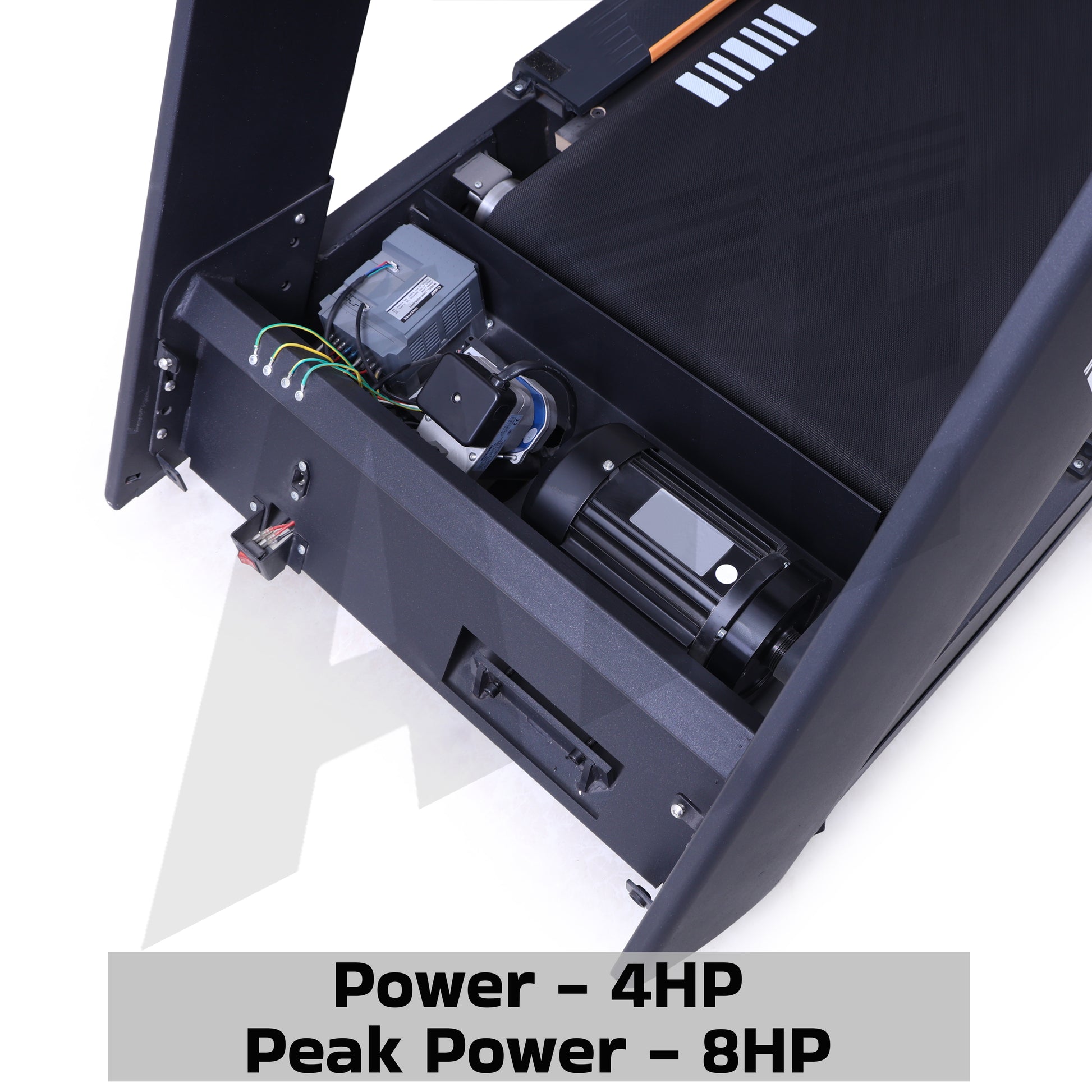 Unmatched Performance: Powered by a 8HP motor, the ATE Treadmill X8 Pro delivers robust and whisper-quiet performance, making it perfect for environments where silence and power are equally important. Whether you're walking, jogging, or sprinting, this motor keeps you going, providing speeds from 0.8kmph to a high 20kmph. Additionally, the 21-degree incline feature helps you push your limits, offering an intense challenge for seasoned runners and athletes. The motor is packed inside the housing of the treadmill which protects the motor and the power supply from dust and debris, decreasing downtime, and reducing the need for frequent servicing.